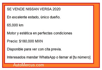 —¡Ya está! Así ya lo puedes imprimir, publicar en redes, en grupos de venta, en AutoMercus, o incluso ponerlo en el vidrio del carro.